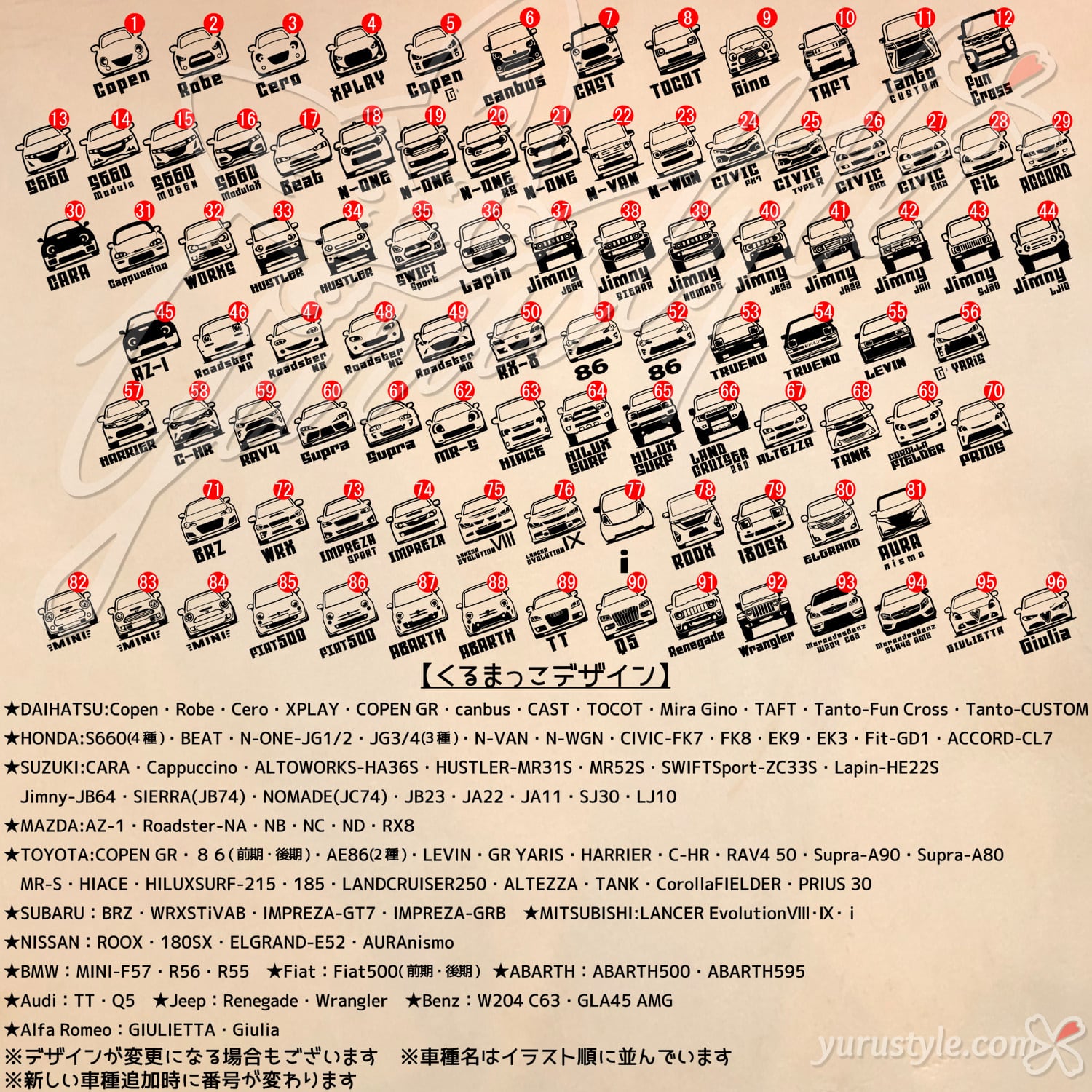 ※車種名はイラスト順に並んでいます