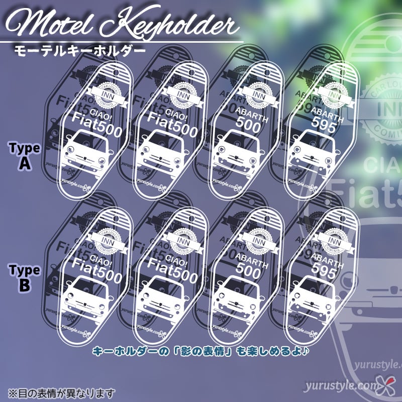 【くるまっこ】モーテルキーホルダー|Fiat500 前期 後期 ABARTH500 ABARTH595 フィアット アバルト