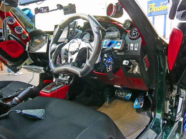 そして、左右のピラーにはDefiメーターが鎮座し助手席バイザーには無線機も
