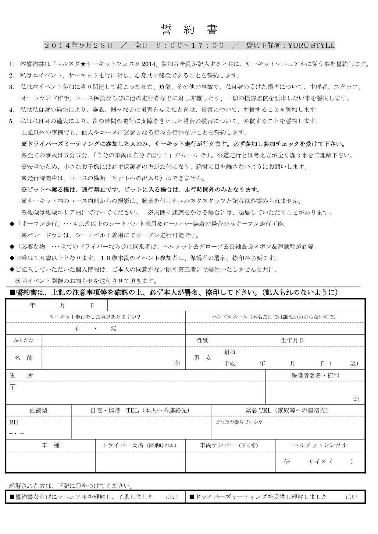 誓約書・サーキットマニュアルについて