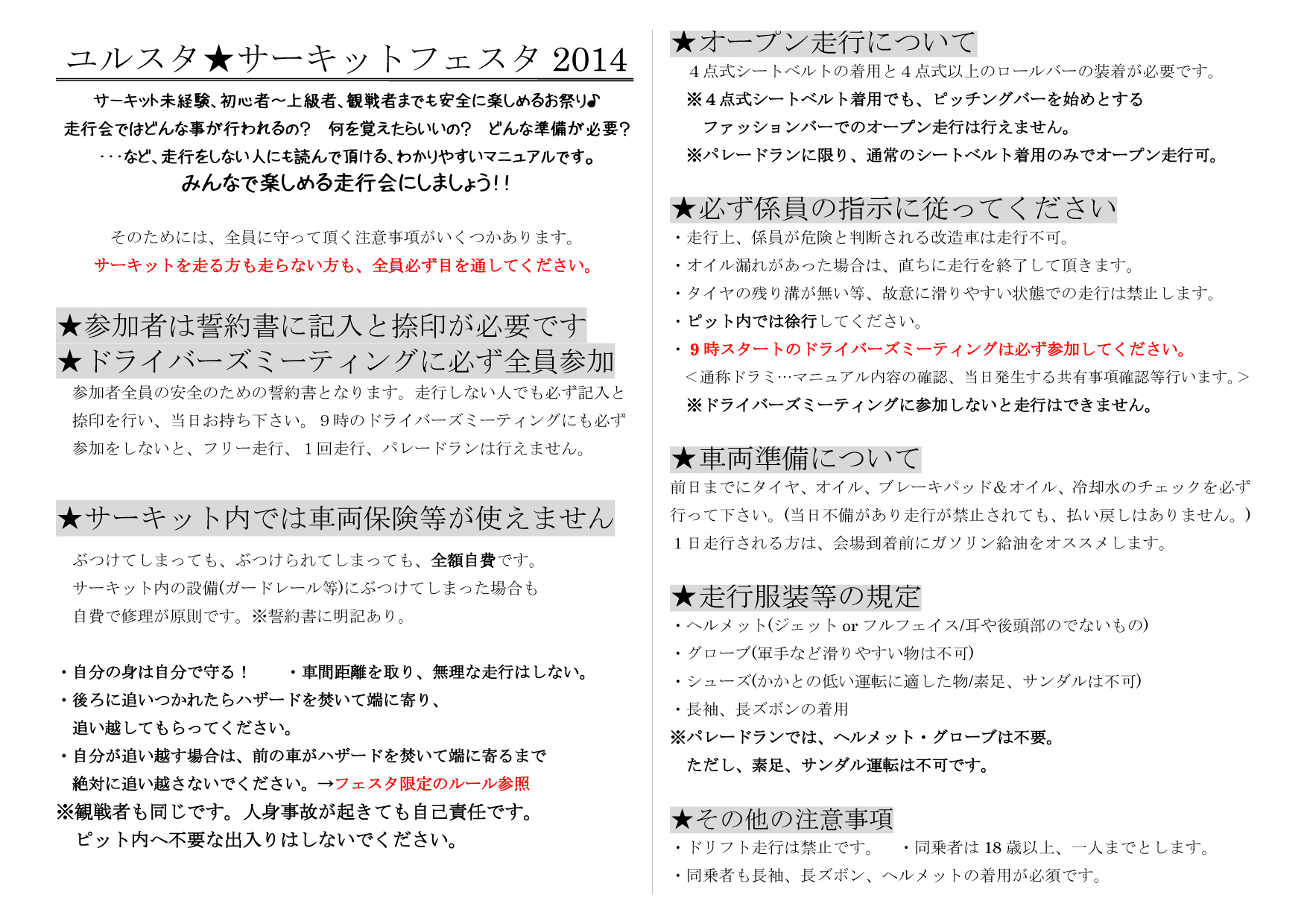 ユルスタ★フェスタ:サーキットマニュアル