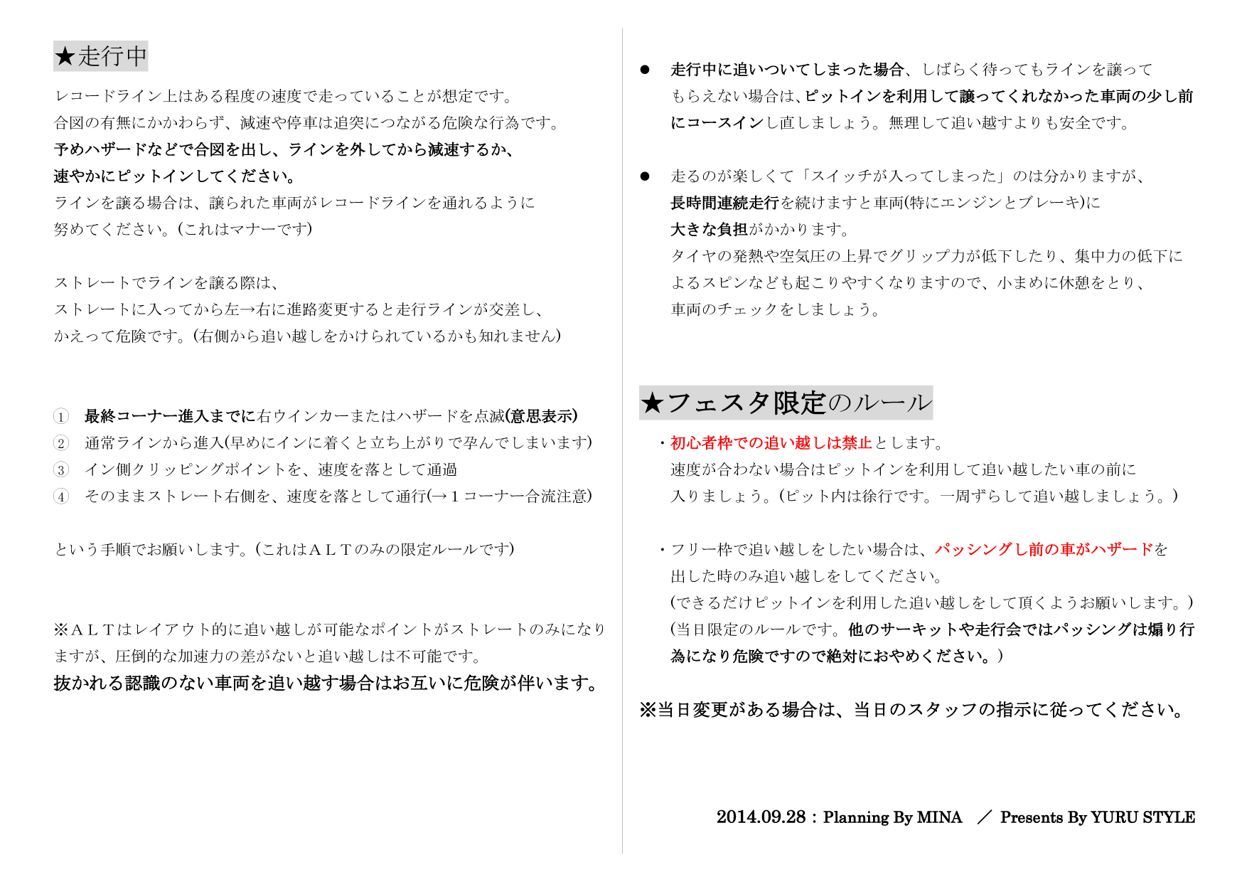 ※走行する上で知っておかなければならないマニュアルです。