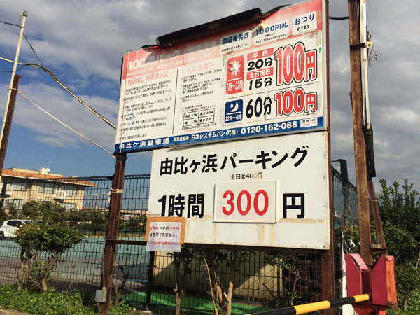 | 「由比ヶ浜パーキング」 神奈川県鎌倉市由比ガ浜4丁目6−36 土日は1時間400円 ローカルベースまでは徒歩3分くらい |
