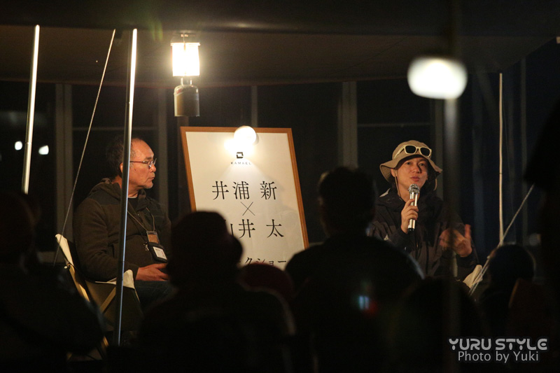 snow peak社長の山井さんと、井浦さんのトークショー。