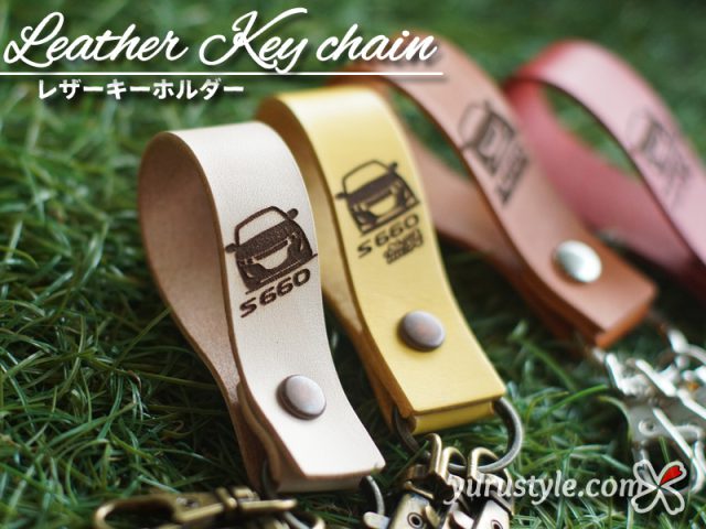 本革を使用したシンプルなキーホルダーに、