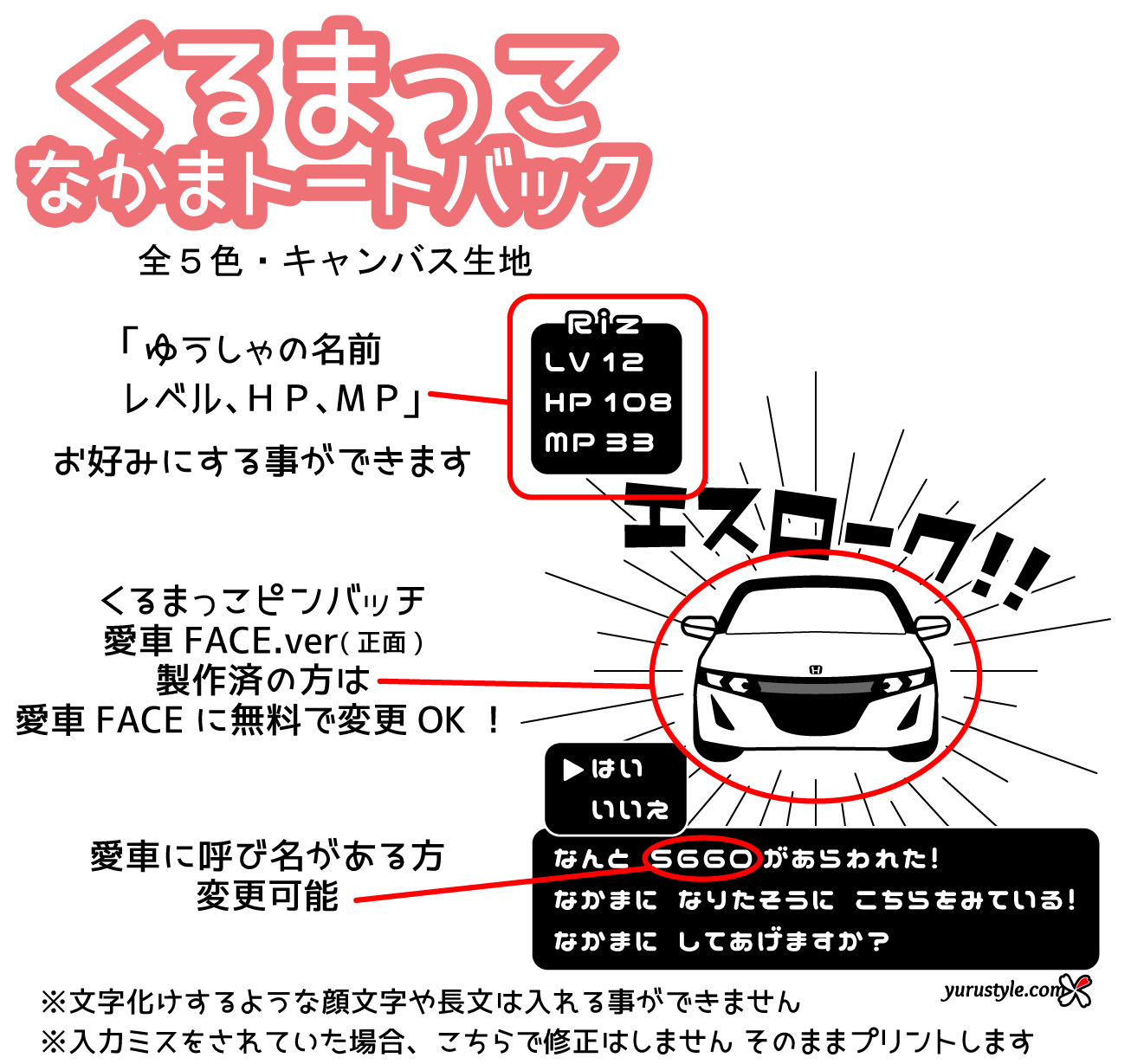 ・くるまっこピンバッチで愛車FACE(正面)を製作済の方は、